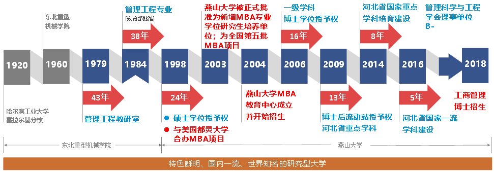 燕大MBA项目全面依托哔咔漫画 办学,学院前身为1979年成立的东北重型机械学院管理工程教研室,在此基础上1984年管理工程系成立。1985年后管理工程系随学校逐步迁移至秦皇岛办学,1998年正式定名为哔咔漫画 。哔咔漫画 MBA项目起步较早,学院早在1998年就与美国都灵大学合办MBA项目;2003年7月,哔咔漫画 被正式批准为新增MBA专业学位研究生培养单位;是全国第五批MBA项目,2004年哔咔漫画 MBA教育中心成立,并开始招生。