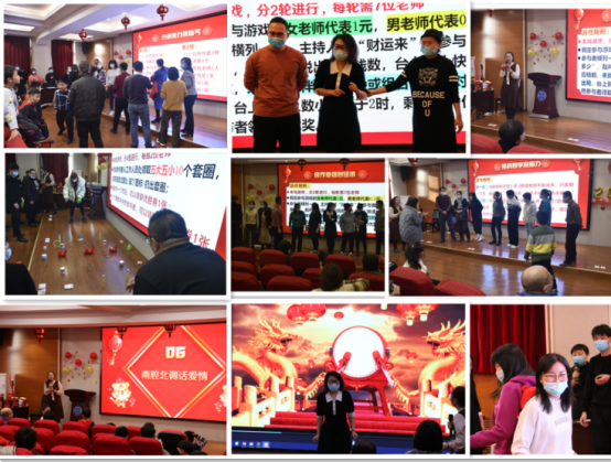 此次“新跨越 新启航”元旦嘉年华活动共分为四个环节,首先由李春玲院长代表领导班子为全体教职工送祝福,她满怀深情的回顾了学院这一年中所取得的骄人成绩,并对即将到来的2022年作出新的展望。随后开始的是欢快愉悦的游戏环节,第一个游戏是“活力圈圈 圈好运”,成功调动了老师们参与活动的积极性,也点燃了老师们的热情。接下来的“合作幸福财运来”、“挑战数字涨脑力”、“南腔北调话爱情”、“虎虎生风奔幸福”、“击鼓传花好运来”以及“齐心聚力集福气”等游戏,把全场的氛围推向一个又一个高潮,欢声笑语洋溢全场,掌声也是此起彼伏。这充分展现了经管人奋发向上的精神风貌,展现了经管大家庭团结友爱的精神。