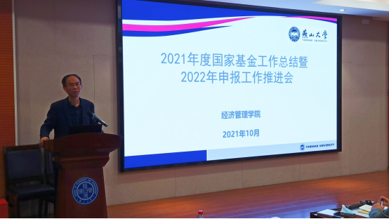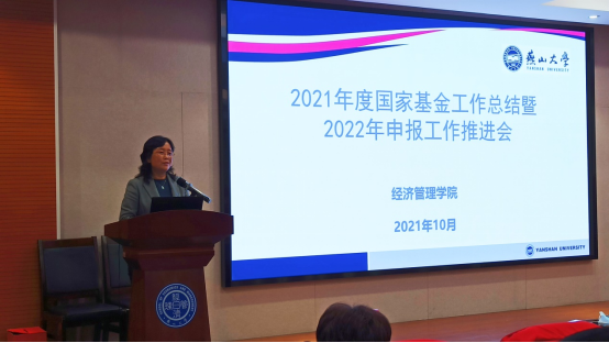 于10月28日召开2021年国家课题申报工作总结暨2022年度工作推进会。会议由李春玲院长主持,翁钢民书记、陈晶璞副院长、靖鲲鹏副院长出席,各系主任及教师代表40余人参会。