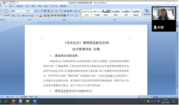 接着,宋娜老师以“《商务礼仪》课程思政教学案例”为题,向大家分享了她对《商务礼仪》课程如何进行“课程思政”建设的思路和想法。宋娜老师讲授该门课程多年,投入了大量的时间和精力进行课程建设,尤其是在“课程思政”建设方面做了诸多探索。本次课程思政案例分享,宋娜老师从该课程“课程思政”建设目标、建设思路、思政内容安排、具体实例等方面进行了讲解。