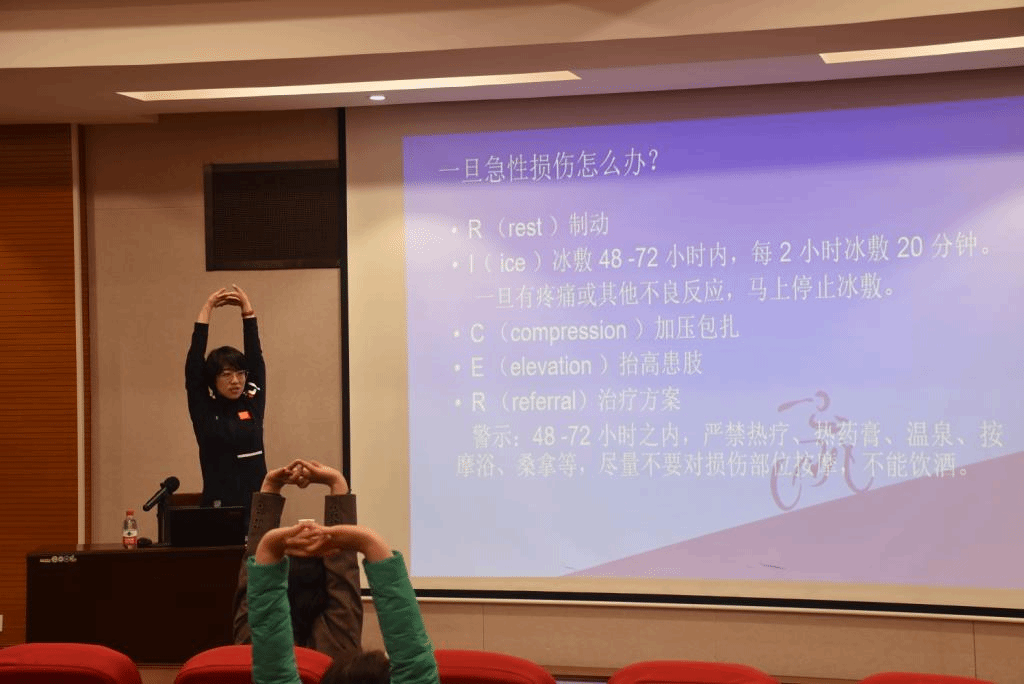 讲座最后,孟妍副研究员从运动的目的、类型、强度、时间、注意事项及应急事项处理方法六个方面介绍了如何进行科学运动。她指出,自愿运动、主动运动、尽全力运动会使运动达到更好的效果,并希望老师们可以重视体育锻炼,掌握适合自己的运动方法。