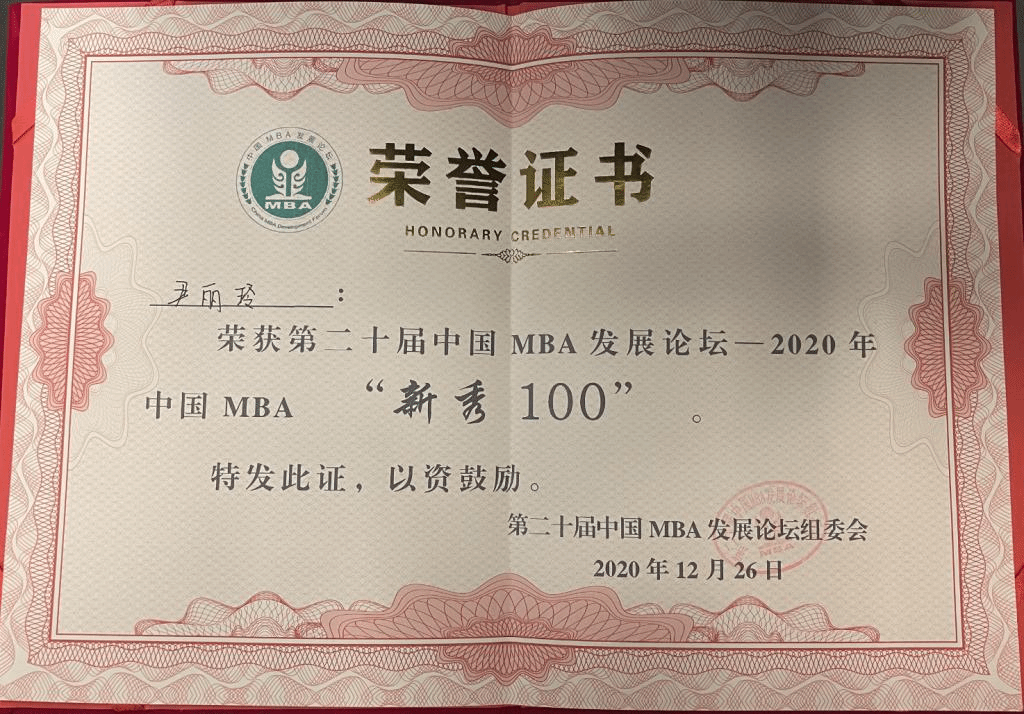 2020级新生尹丽玲获得2020年中国MBA“新秀100”奖