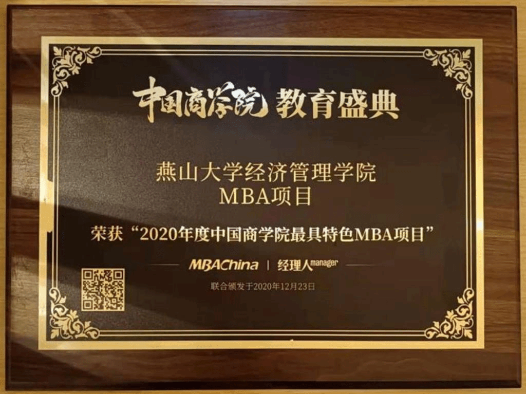 MBA项目荣获“2020年度中国商学院特色MBA项目奖”