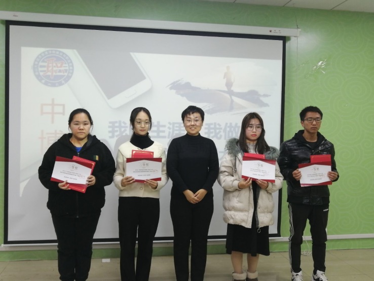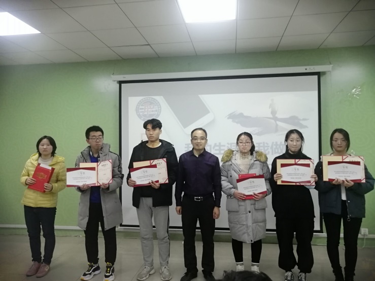 经过激烈的答辩环节,本次活动的最终结果产生,吉克伍勒、褚雨婷获得一等奖,宋靖宇、龙筱玮、郝明泽获得二等奖,王佩、兰靖、王辉辉、胡艳芳、王传悦、张璐瑶六名答辩选手获得三等奖。最后由评委对参赛选手进行颁奖,本次职业生涯规划大赛决赛在热烈的掌声中圆满完成。