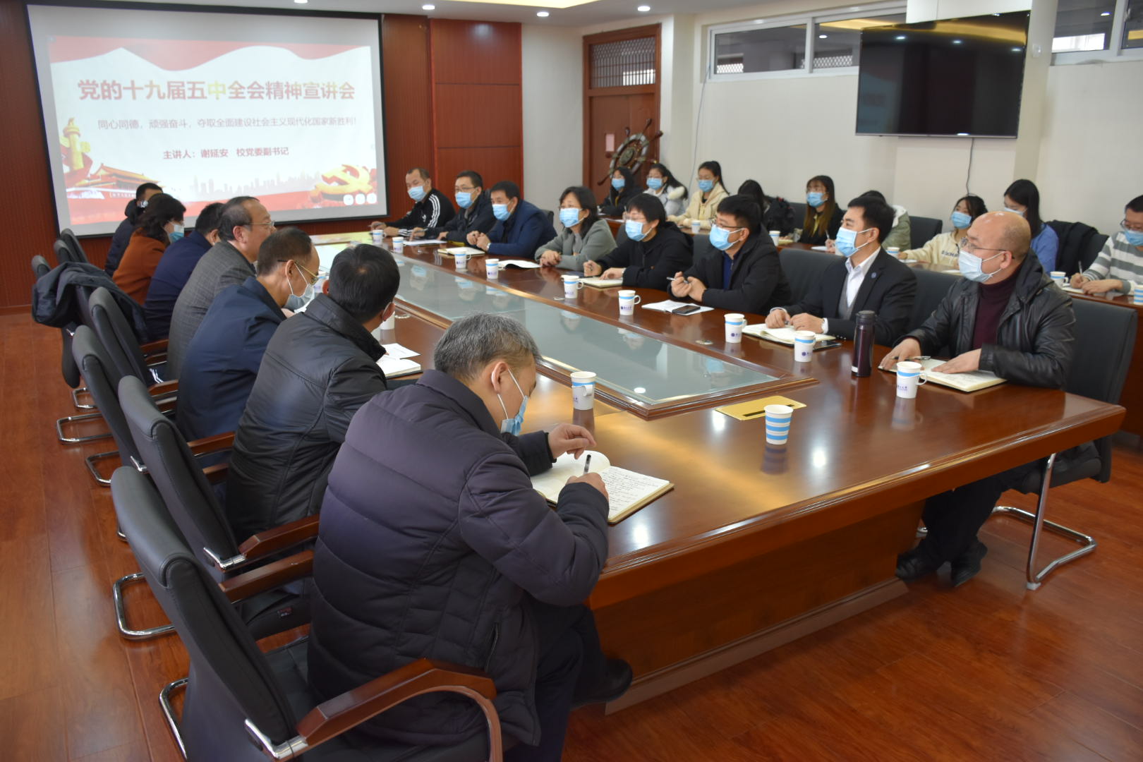 谢延安从新发展阶段、新发展理念、新发展格局等三个方面进行了宣讲解读。他指出,党的十九届五中全会作出我国进入新发展阶段的重要论断,这是以习近平同志为核心的党中央审时度势、顺时应势作出的重大政治判断,是科学把握世界大势、时代发展潮流、中国发展条件、人民群众期待的战略考量。全会展望了“十四五”时期经济社会发展的前景目标与2035年基本实现社会主义现代化的远景目标,明确提出了全面建设社会主义现代化国家的指导思想、基本原则、发展理念、发展布局,系统展现了我国社会主义现代化建设的美好愿景。《建议》系统部署了“十四五”时期经济社会发展十二个方面的重点任务,提出以防控化解重大矛盾风险、建设更高水平的平安中国为主线构筑新发展阶段的安全屏障,强调坚持党对全面建设社会主义现代化国家的全面领导,为发展路径提供重要保障。