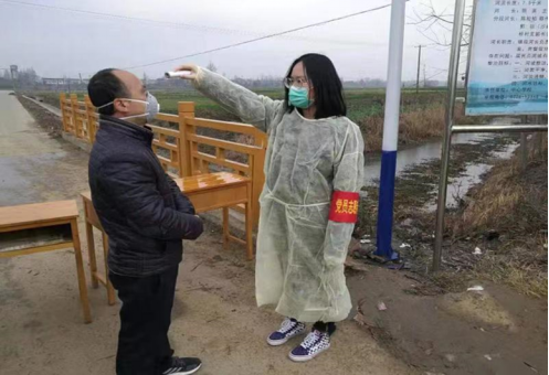 2016级国贸1班王紫月主动申请加入湖北省仙桃市陈场镇人民政府的防疫工作志愿者队伍。她的工作主要是摸排从武汉回来的返乡人员,严格落实其居家隔离,早晚记录体温;进村宣传,讲解防疫知识;在沙岭路段卡口值守,劝返没有通行证的行人。