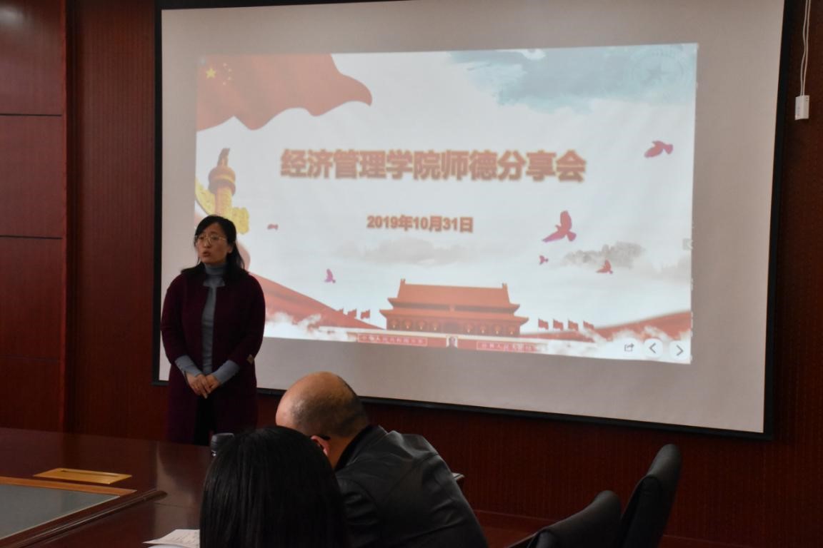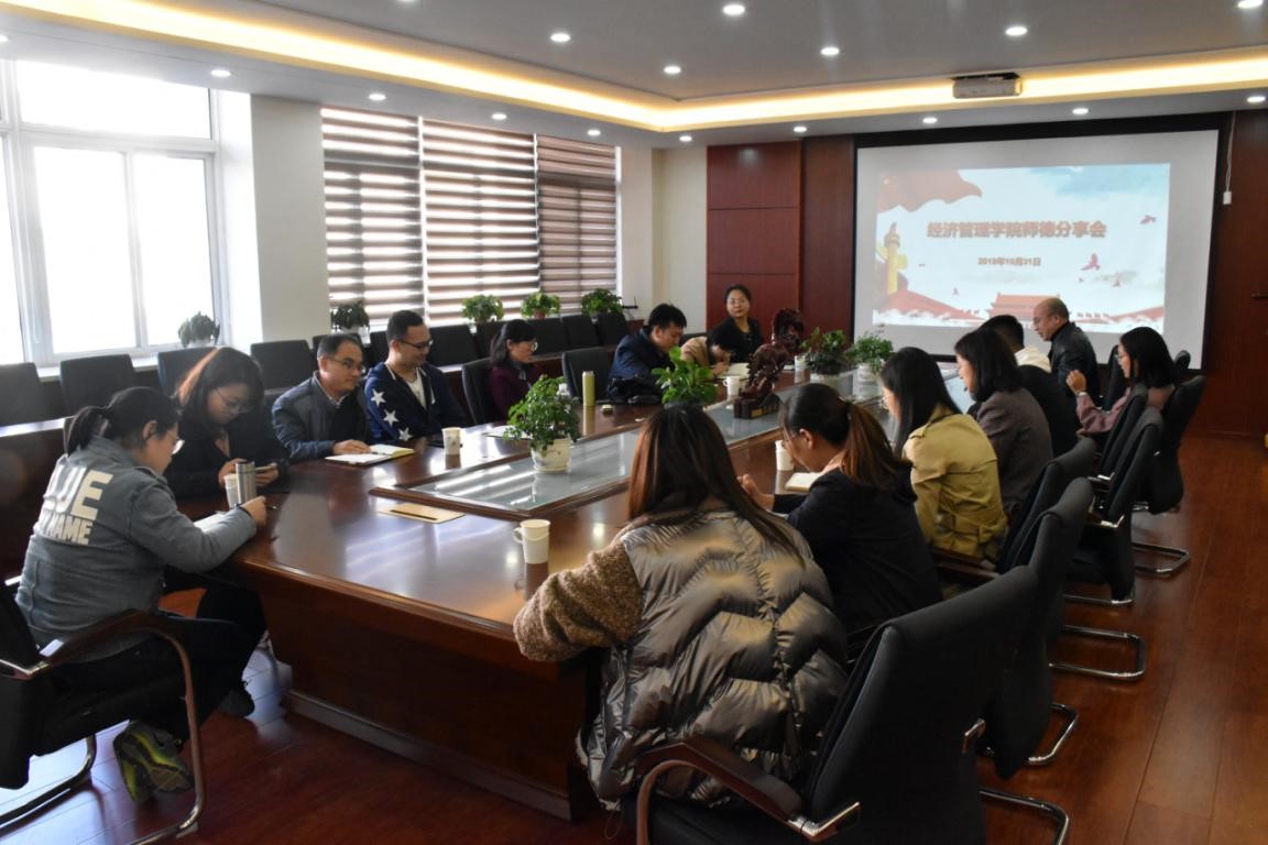胡月秀、王玉坤等三位师德标兵和师德先进个人,在经管楼A216会议室举行了师德分享会。会议由学院副院长靖鲲鹏主持,学院中青年教师代表参加了分享会。