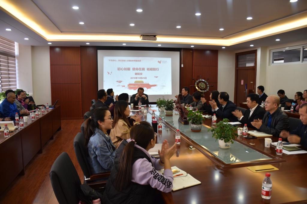 谢延安紧扣“不忘初心、牢记使命”主题,从提高站位,深刻理解认识党的初心和使命;落实高校立德树人、为党育人、为国育才的根本任务;自我革新,担当作为,如何守初心和担使命三个方面展开讲座。