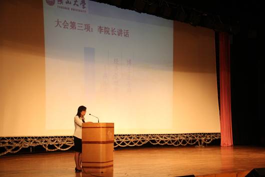 院长李春玲、党委书记左莉、副院长陈晶璞、副书记薛传佳及各系教师代表和辅导员们出席了典礼。典礼由薛传佳副书记主持。