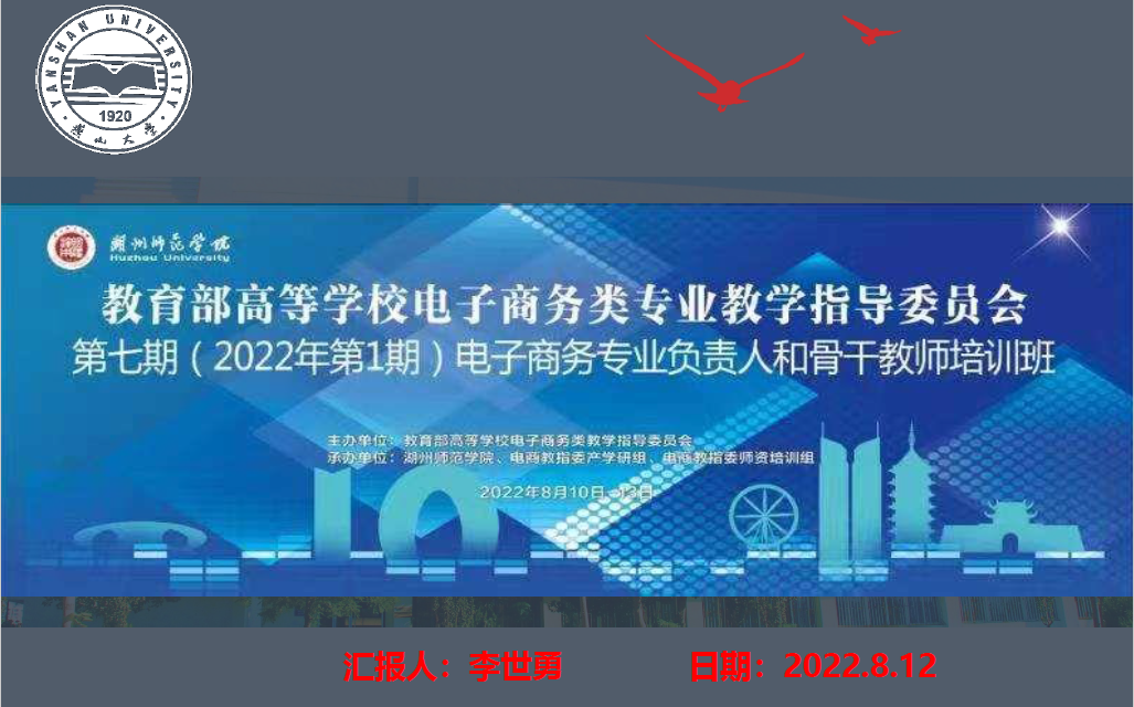 2022年8月10日至12日,教育部电子商务类专业教学指导委员会(以下简称电商教指委)第七期(2022年第1期)电子商务专业负责人和骨干教师培训班在湖州师范学院正式开班。电商教指委主任委员、北京物资学院校长刘军教授,电商教指委副主任委员覃征教授、孙宝文教授、陈进教授、刘兰娟教授、章剑林教授、彭丽芳教授、贺盛瑜教授、李琪教授,电商教指委秘书长张润彤教授、副秘书长华迎教授,电商教指委委员刘业政教授、王刊良教授、姚卫新教授、帅青红教授、张李义教授、孙建红教授、陈阿兴教授、胡桃教授、周忠宝教授等参加了开班仪式。此次培训班主题为“新文科建设背景下的电子商务案例教学与研究”,采取了专家嘉宾线下与教师学员线上相结合的方式,来自全国132所学校的254名教师参加了此次培训班,哔咔漫画