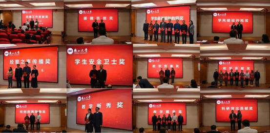 院长李春玲致开幕辞。李春玲首先代表学院,向光临典礼和正坚守在工作岗位上的全体教职工致以最真挚的祝福和崇高的敬意。李春玲强调,2022年学院在党的建设、教育教学、科学研究、学科建设、学团工作、国际化建设、管理服务等方面都取得了可喜成绩,但每一点一滴成绩的取得都离不开每一位教职工的努力付出。李春玲希望,在未来的教书育人事业中,受表彰的教职工百尺竿头,更进一步,全院教职工见贤思齐,共创辉煌。