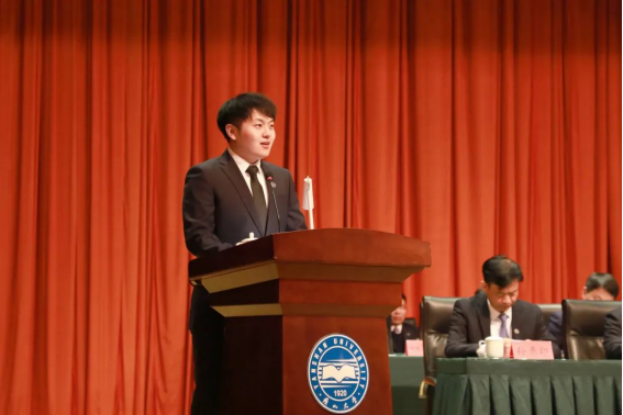2020级工业工程与管理专业研究生冯益为作为先进个人代表发言。身为经管学子,他将青春融入乡村振兴和社会实践,带领学院文艺骨干走进山村,组织文艺下乡惠民演出,志愿策划、执导中国农民丰收节,向全社会展示优秀农业成果。多年来他无私奉献、乐于助人,中央文明办授予其“中国好人”荣誉称号。他以实际行动践行“厚德、博学、求是”的校训精神,传承熔铸在燕大人骨子里的奋斗基因、工匠精神、卓越品质和家国情怀,展现了经管学子的时代风貌。