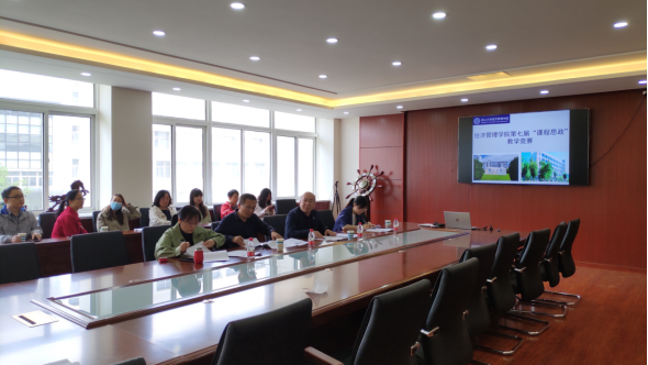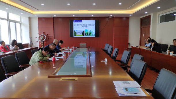 课程思政建设工作深入开展,切实促进各类课程与思政课同向同行,提升课程思政教育教学质量,学院于5月17日下午在经管楼A215会议室举办了第七届“课程思政”教学竞赛,本次竞赛特邀4位具有丰富教学及评审经验的学院专家担任评委,副院长靖鲲鹏教授为组长,全院近半数教师观摩了本次竞赛。
