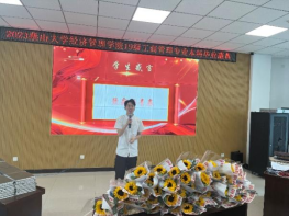 接下来,在场的老师们为在场每一位毕业生颁发了印有工商管理系文化系统的定制版的日记本,用于记录和书画美好未来;并赠送给每一位在校毕业生一支向日葵,希望同学们心若花木,向阳而生,逐光而行。在欢送会接近尾声时,毕业生们再次豪情宣誓:工商学子,重任在肩;管理创新,勇往直前。与时俱进,扬弃借鉴,厚积薄发,约取博观。茹古涵今,通权达变;知行合一,追本溯源!厚德博学,行方智圆;家国天下,立地擎天!
