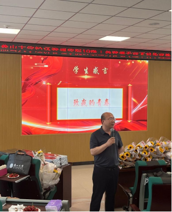 随后,工商管理系主任王玖河教授一段走心的饱含深情的发言,句句说在同学们的心坎上,引起阵阵掌声,他希望每位工商人都传承和发扬燕大人“奋斗基因、工匠精神、卓越品质、家国情怀”的文化品格,追逐光、靠近光、成为光、散发光,奋力书写青春绚丽华章。