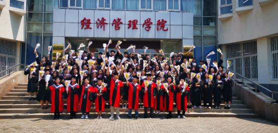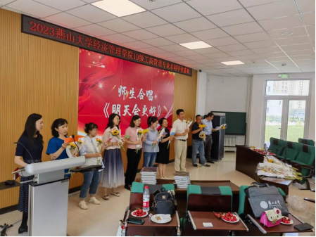 最后,工商管理系教师代表和在校毕业生齐唱《明天会更好》,并合影留念。