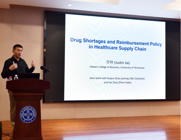 第一阶段,贾峥博士在经管楼A218会议室做学术报告,题目为《医疗供应链中的药品短缺问题及其与报销政策之间的关系》,学院相关研究领域的教师及研究生参加了此次报告会,报告会由管理科学与工程学科负责人李世勇教授主持。