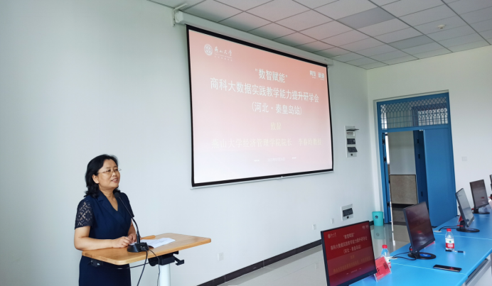 李春玲院长向与会老师表示热烈欢迎,对学校及学院发展情况以及学院在数智化教学方面的探索与实践进行了简要介绍,并对新道科技股份有限公司一直以来在经济管理类高等教育方面所做的创新实践和教育培训工作表示认可。