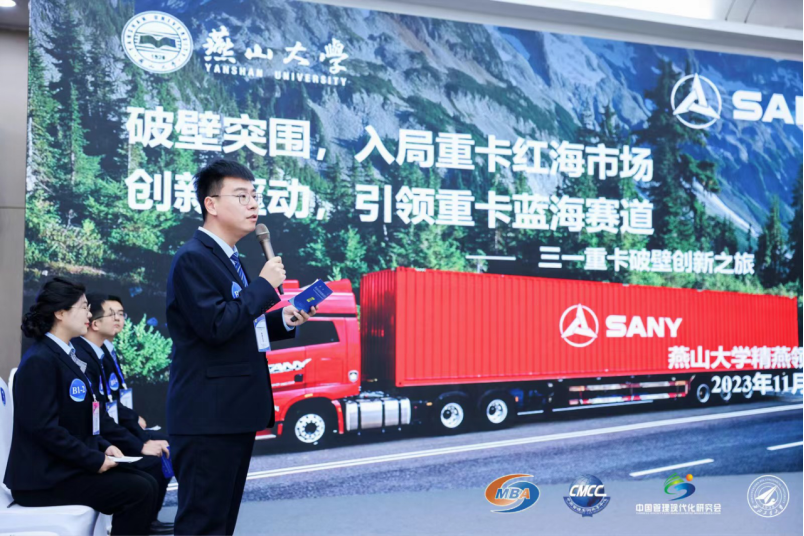 MBA队员第一时间分头进行案例破题、问题分析、框架搭建、资料查找、PPT编写、上台演练、问答准备等一系列紧张的备赛工作。在指导老师王玖河与苏艳林教授的带领下,团队师生通过通宵达旦的艰苦奋战和缜密的分析讨论,以《破壁突围,入局重卡红海市场;创新驱动,引领重卡蓝海赛道——三一重卡破壁创新之旅》为题呈现给各位评审老师细致的分析报告,受到了全国评委和专家的一致认可。