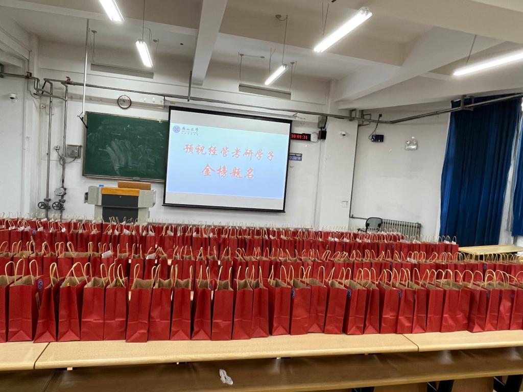 的一项传统,已经连续开展多年。今年,近400位正在备战考研的学子收到了这份加油礼包,希望同学们从这一份份精心准备的礼物中,感受到学院的殷切期望和诚挚祝福,愿你终成所愿,愿你一往无前,愿你在这个冬日一战成硕!