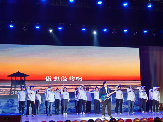 在“再创辉煌”篇章中,丰富的节目内容使在场师生在喜庆与祥和的乐声中,共同眺望美好的未来。本篇章的文艺节目包括体现“青春”“奋斗”“理想”的《拒绝再玩》《山海+鲜花》《老男孩》和旅游协会原创歌曲《去做你想做的吧》。最后,晚会在旅游系师生代表合唱的《我和我的祖国》中画上完美句号。