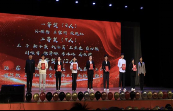 校学生工作处处长薛传佳和校团委书记段磊为“礼仪大赛”获奖学生颁发荣誉证书