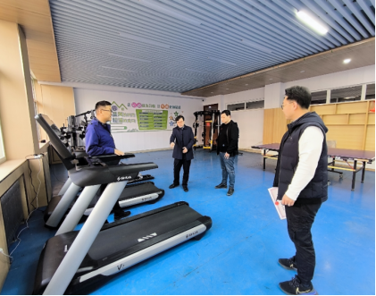 在学院工会活动室,张振华检查了健身设备用电、卫生清洁和日常养护等工作,强调在确保用电安全的前提下,为老师们提供良好的健身环境。