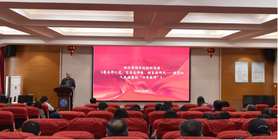 于3月28日下午在经管楼A218学术报告厅召开师德师风集中培训会。学院党政领导班子成员、全体教职工参加了会议。会议由副院长靖鲲鹏主持。
