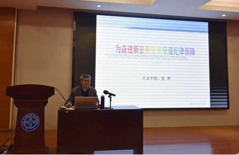 张明教授以“为奋进新征程提供坚强纪律保障——中国共产党纪律处分条例解读”为主题,从党纪处分条例的修订背景、条例修订的主要内容和条例修订的重大意义三方面对党纪律处分条例进行的全面的解读,明确了落实《条例》规定的重要意义,对党员干部准确把握《条例》主旨要义、更好抓好贯彻执行,具有积极的指导和促进作用。