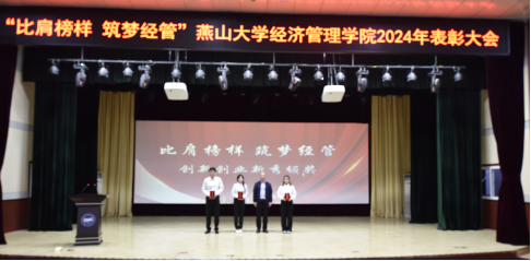 胡海菊老师、刘琳老师为先进班集体:2022级经济与金融专业2班、2022级工业工程(中外合作办学)专业3班、2022级工商管理类专业7班、2021级工业工程专业1班、2021级电子商务专业2班、2020级经济与金融专业4班、2022级工业工程与管理1班颁奖。