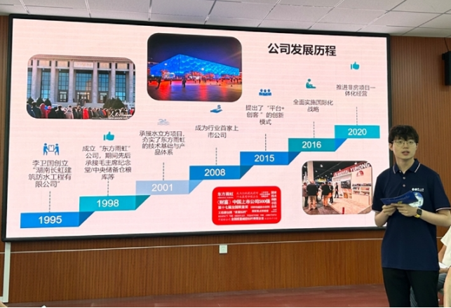 校园突围赛以《沧海竞渡,雨后彩虹:东方雨虹隐形冠军之路》作为比赛案例。整个比赛共分大小PK两个环节,首先是小PK环节。三支队伍分别围绕赛事案例进行深入剖析,以案例和理论为基础,以发展和创新为翼骨,不仅为我们展示了东方雨虹的发展之路与面临的挑战,还提出了对东方雨虹的品牌优化方案、市场营销策略及未来发展规划等方面的成熟思考,展示了学员们扎实的理论基础、敏锐的洞察能力和创新的商业思维。