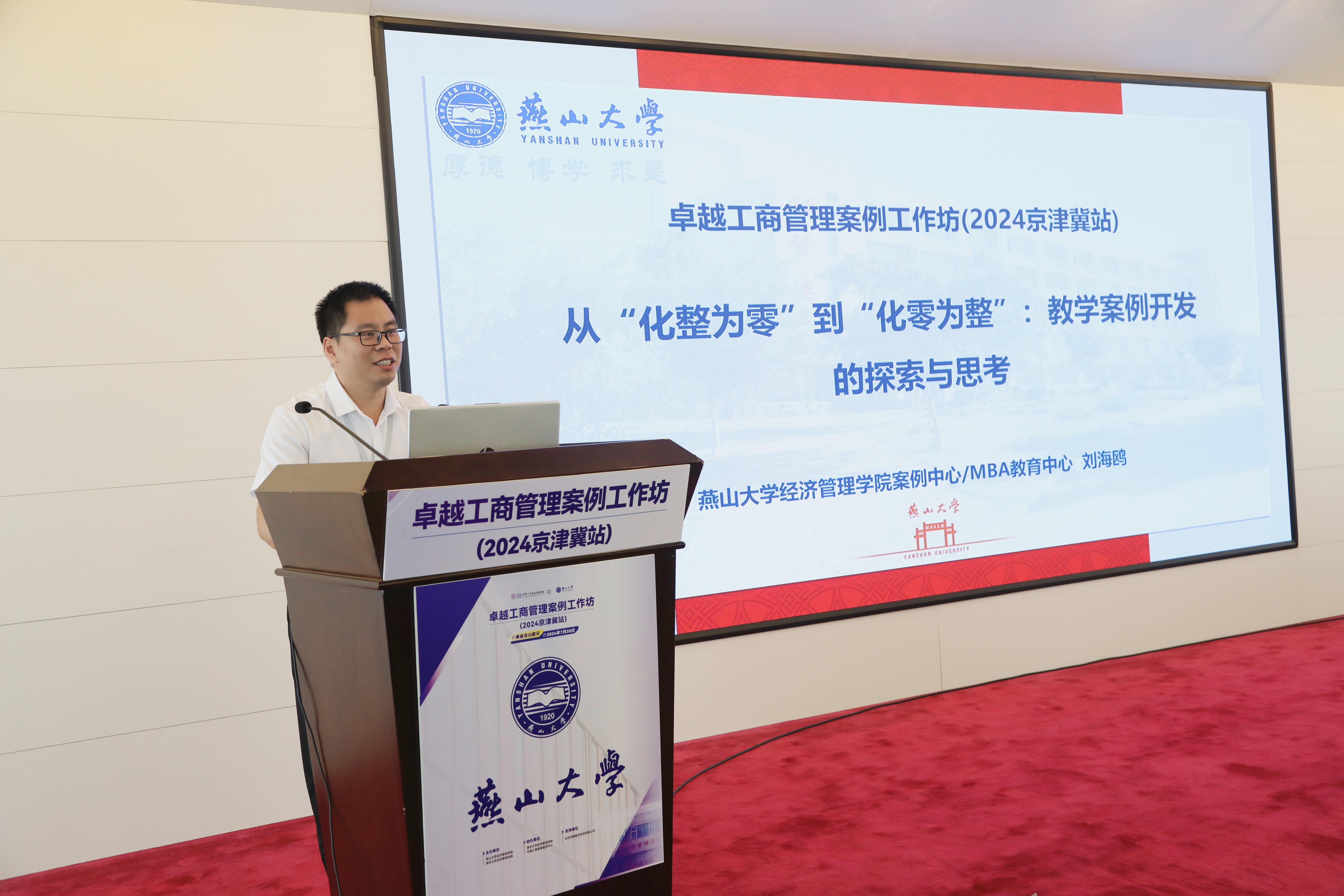 MBA教育中心主任刘海鸥教授进行了题为“从化整为零到化零为整:教学案例开发的探索与思考”的专题分享。他从“化整为零”和“化零为整”两个层面入手展开了关于案例写作的探索分析,细致讲解案例开发涵盖的多维度内容:题目应体现企业的典型性与真实的案例场景,内容结构上应逻辑结构合理、教学环节完备,教学笔记要在案例企业、故事、人物等载体上对“三魂七魄”进行构建和解读,问题设计上要应启发性、开放性和层次性,并结合自身的案例撰写感悟为参会师生提供了新颖的案例开发思路。