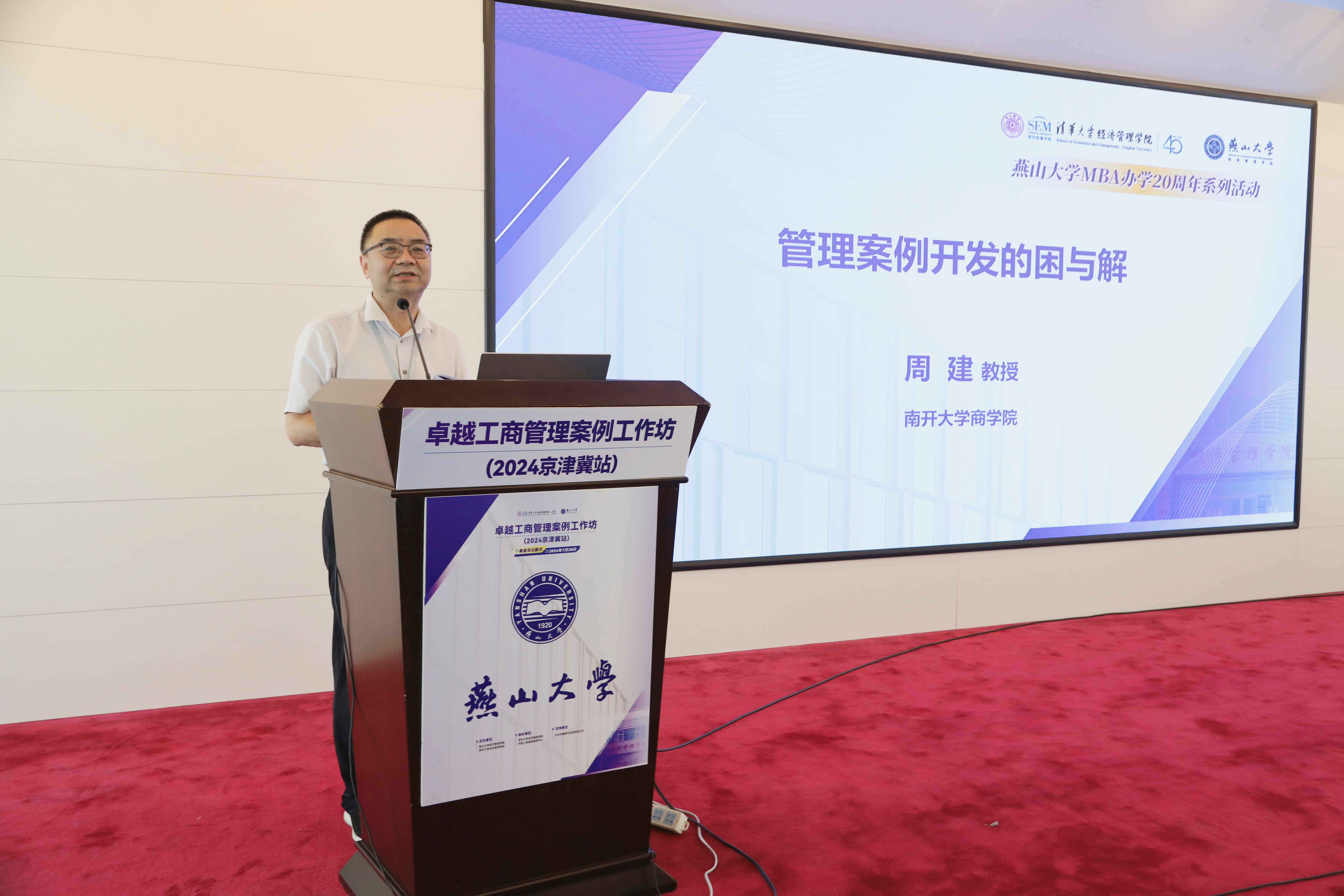 院长王辉主持。首先,南开大学商学院周建教授以“管理案例开发的困与解”为题,基于工商管理的视角,回答了“为什么要高度关注管理案例?什么是管理案例开发?管理案例开发一般会遇到哪些普遍问题?”他从案例的仿真性、管理原理的普适性、工商管理专业教学的特殊性等多个维度介绍了管理案例的重要性与案例开发的必要性,讲解了案例开发的全过程,并结合百优案例的评审指南与案例开发的亲身实践,强调了案例开发与撰写过程中的关键要点。最后,周教授从百优案例评审者的视角,指出了教学案例开发中存在的一般问题,为大家规避了案例开发与撰写过程中的“雷区”,带来一场干货满满的案例开发盛宴。