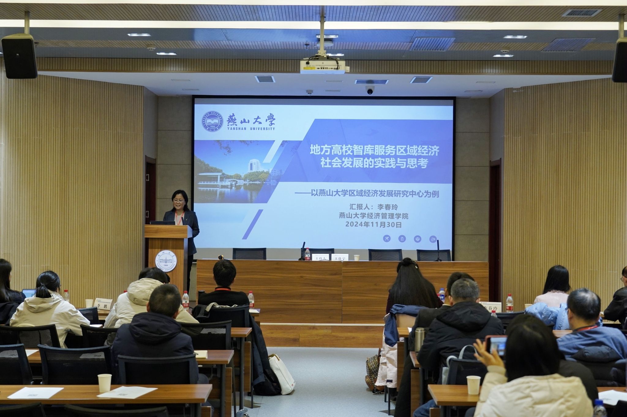 区域经济发展研究中心为例,进行了题为《地方高校智库服务区域经济社会发展的实践与思考》的主题分享。全景呈现了地方高校智库从基础架构夯实、人才梯队培育到成果多点开花的发展全景图,生动诠释地方高校与区域经济社会互促共生紧密关系,为同类智库扎根地方、服务区域树立典范标杆。