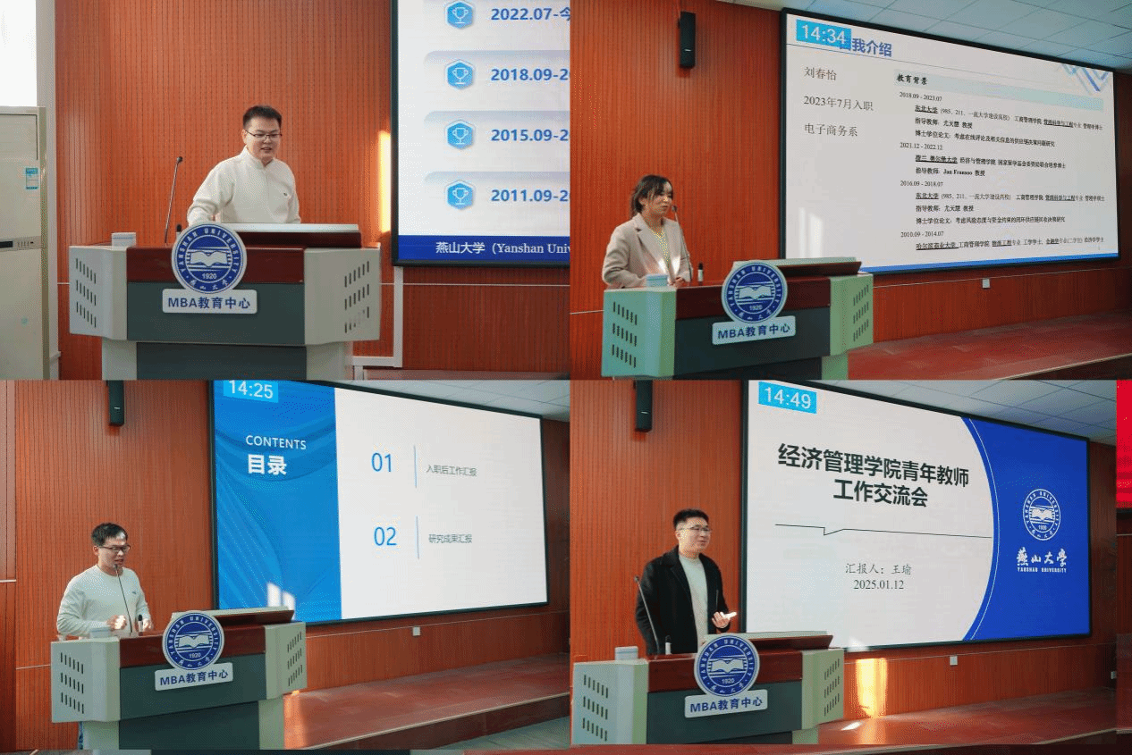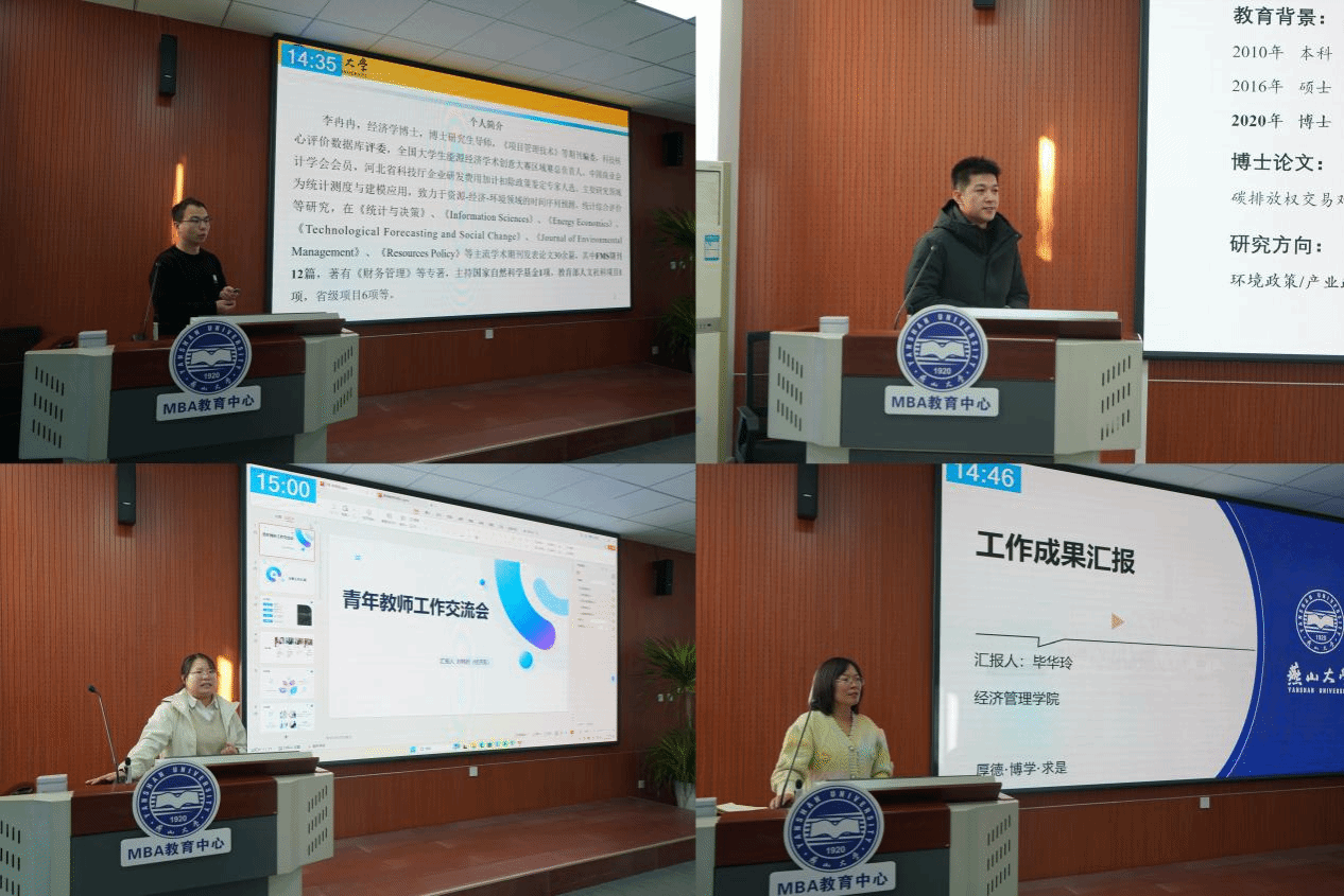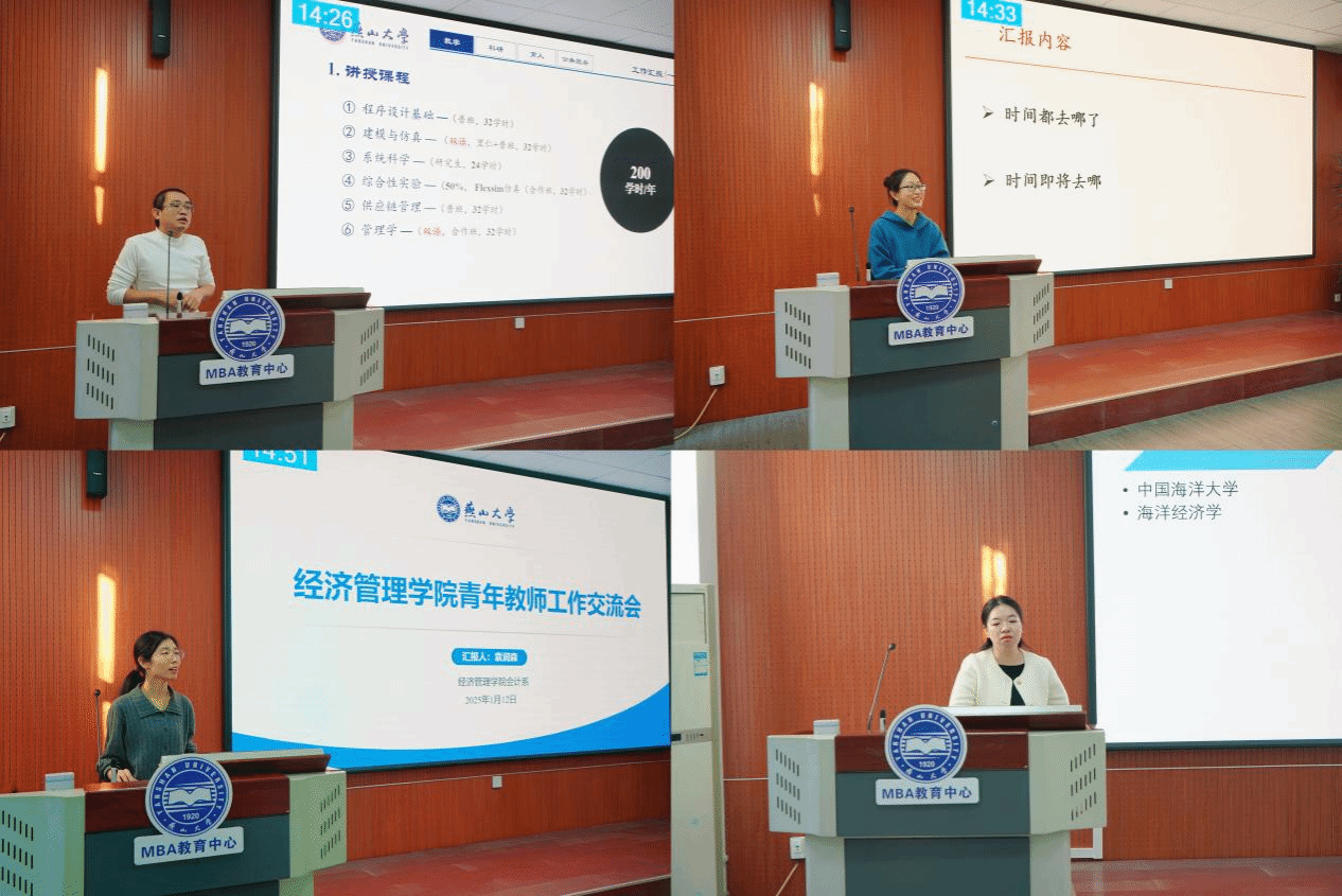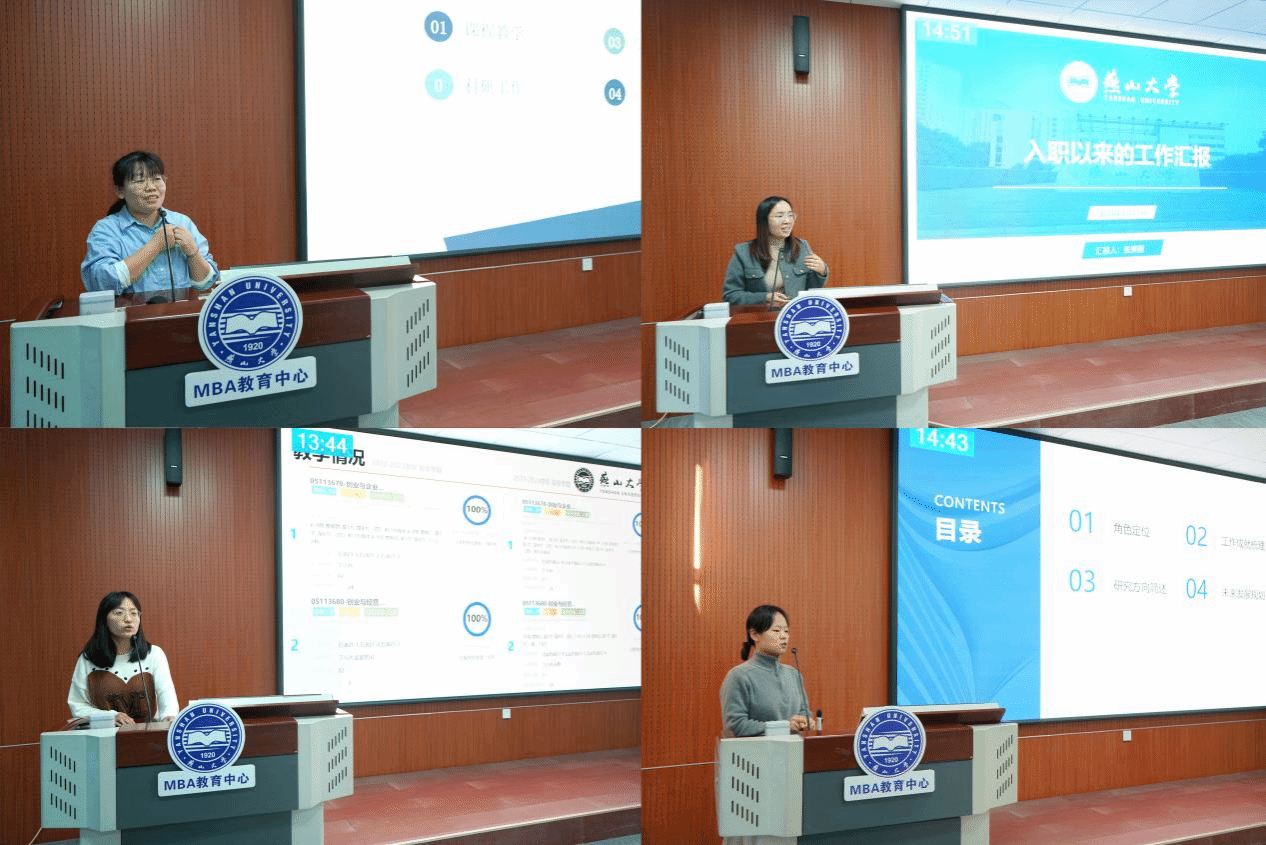 具体交流环节分为6个阶段进行,为时一天半,32位青年教师围绕教学、科研、育人和公共服务等方面,就入职以来的主要工作和业绩进行了汇报交流,并详细阐述自己的研究领域和主要研究成果。汇报内容充实、落地,交流过程高效热烈。教师们的思想、观点和经验在摩擦与碰撞中不断激发出新想法、新见解和新思路。会场气氛浓厚、热烈,彼此间互相学习,互相借鉴,互相促进,老师们纷纷表示受益匪浅。