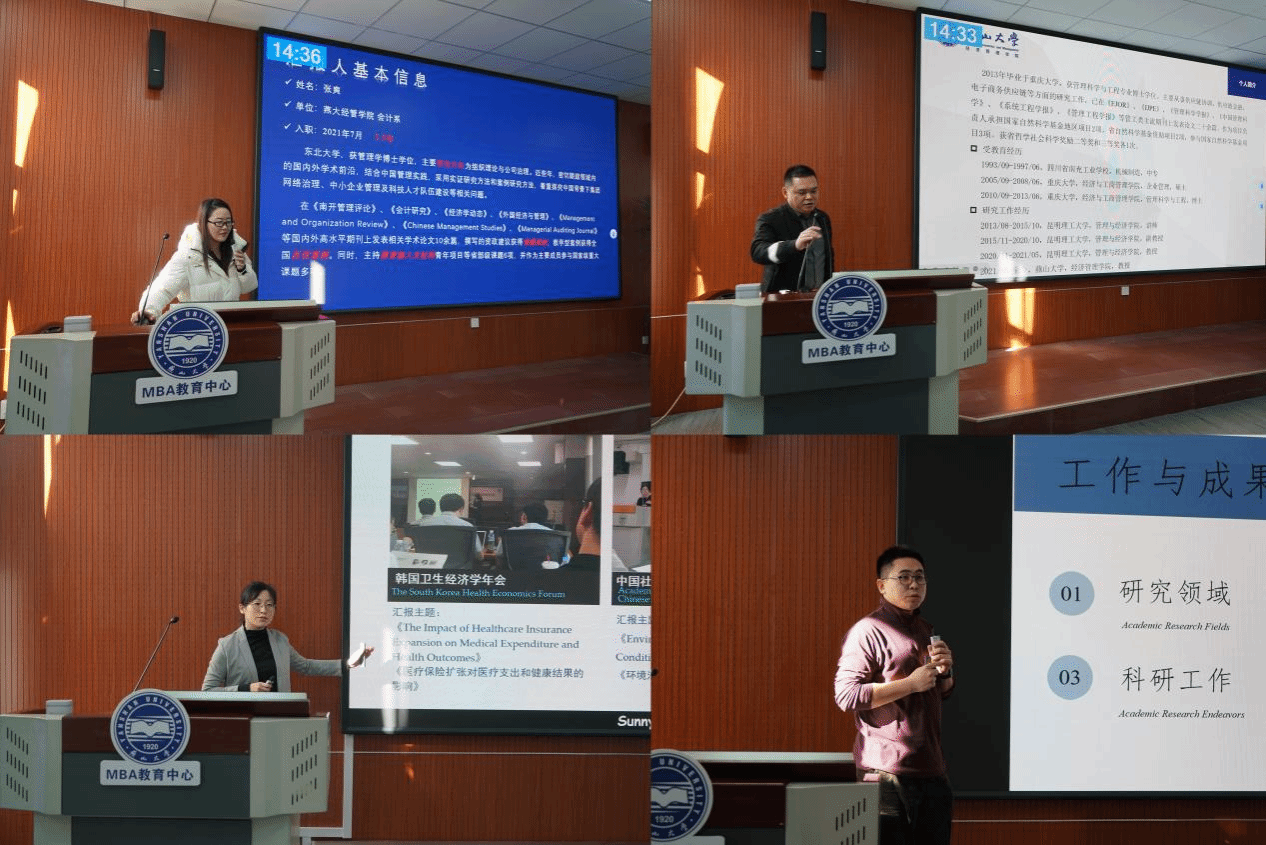 闭幕式阶段,学院工商管理学部主任张敬伟教授、管理科学与工程学部主任李世勇教授、学院学术委员会委员代表王晓丽教授以及陈晶璞副院长,也毫无保留地分享了自己过往的成长经历和宝贵经验,并对青年教师的发展提出指导。具体涉及:校内外多交流与合作;教学与科研相辅相成;国内国外发表均衡;科研数量向质量转换;研究方向顺利过渡;育人与个人发展并重等。