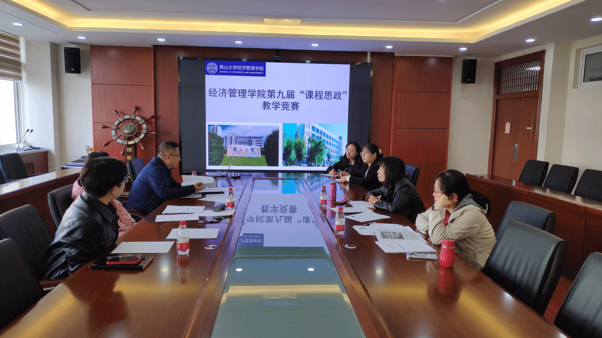 课程思政建设工作深入开展,提升教师思政教学能力,学院于4月23日下午在经管楼A215会议室举办了第九届“课程思政”教学竞赛,本次竞赛特邀5位具有丰富教学及评审经验的学院专家担任评委,教学督导王宏艳老师为组长,学院多位青年教师观摩了本次竞赛。