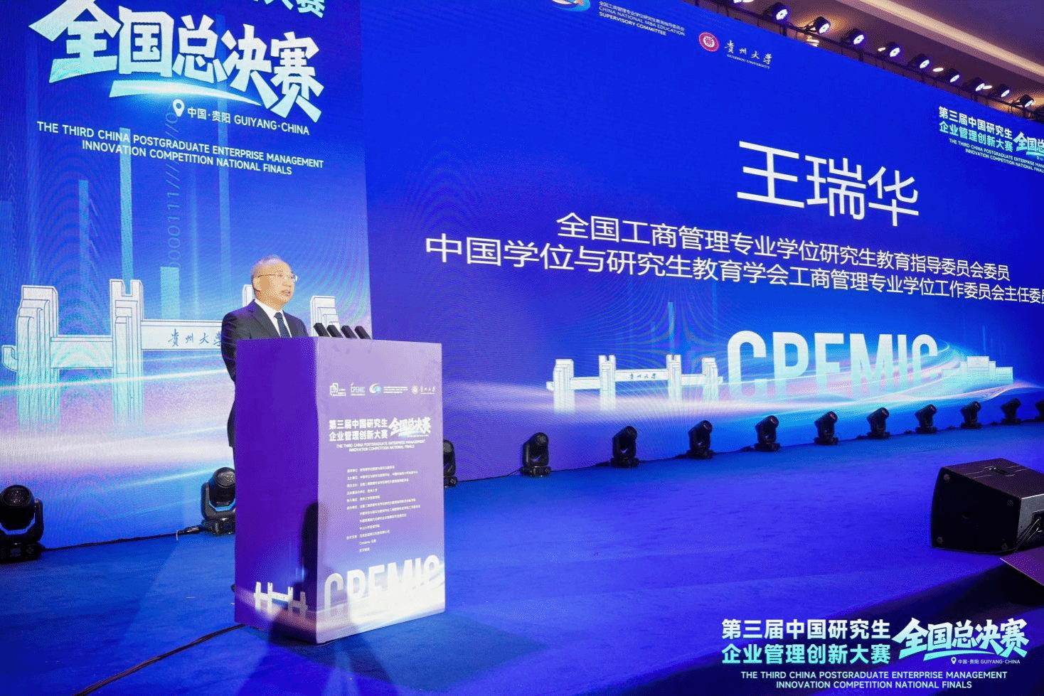 王瑞华在致辞中向主办方中国学位与研究生教育学会、承办方贵州大学以及命题企业、评审专家致谢。他表示,大赛是响应科教兴国、人才强国、创新驱动发展三大战略,推动研究生教育内涵式发展的重要平台。他期待在学界、业界与师生的共同努力下,持续夯实赛事基础、完善运行机制,推动大赛迈向高质量发展新阶段。