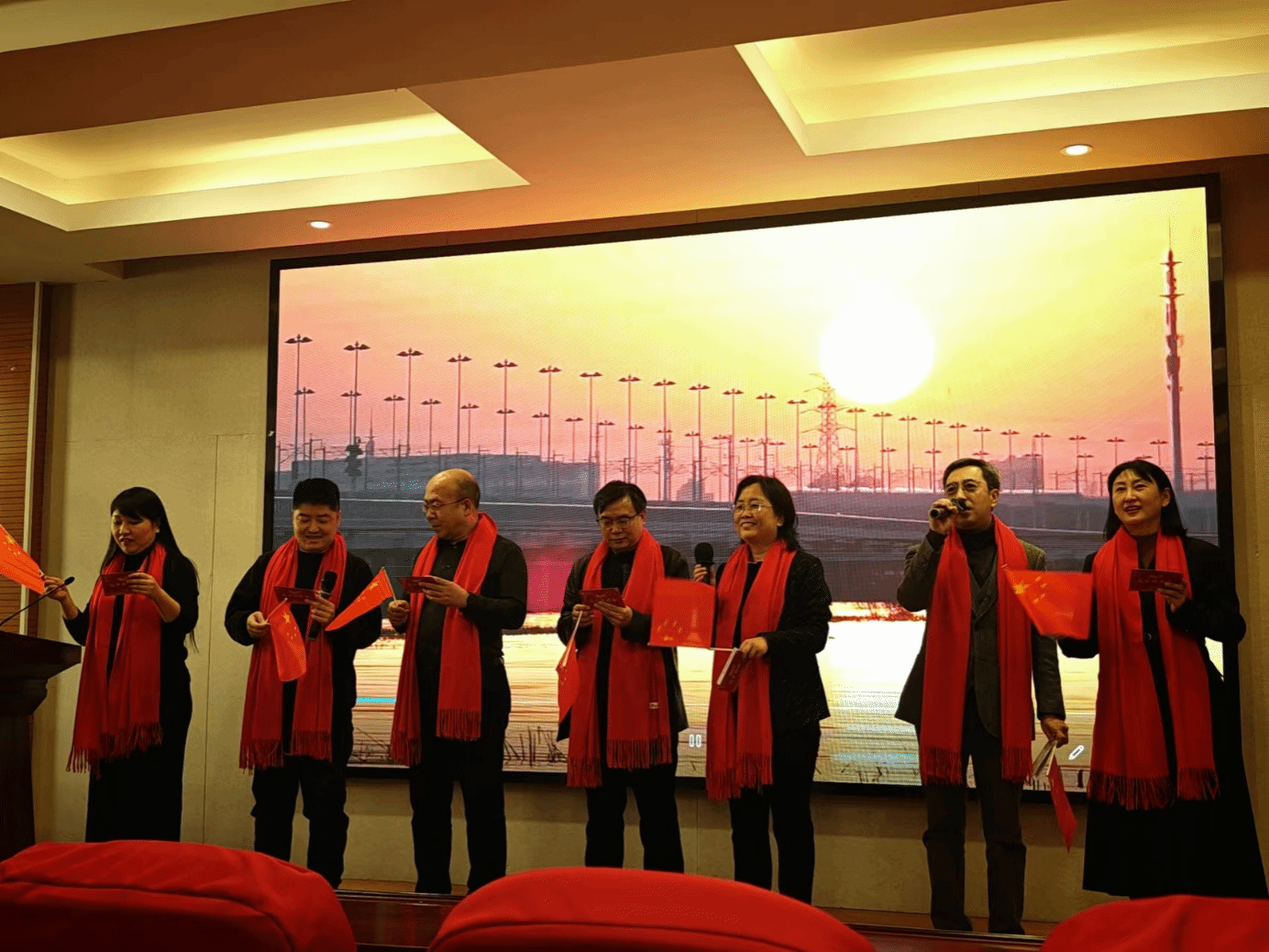 文艺表演在领导班子、教师代表的集体诗朗诵(合唱)《如愿》中拉开序幕,精彩的朗读、动人的旋律配合上燕大百年奋斗发展的情景视频,瞬间点燃了现场观众的热情,直接将演出氛围推向高潮,大家纷纷自发加入合唱,共同感受那份饱含浓厚深情的爱党、爱国、爱校情怀。随后,各部门精彩的节目轮番上阵,整场活动升腾跌宕、精彩纷呈,现场掌声和喝彩声更是此起彼伏。最后,近一个小时的文艺演出在合唱《燕大欢迎你》(改编歌曲)中落下帷幕。