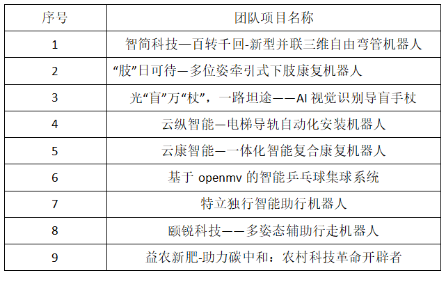 经过激烈角逐,特立独行智能助行机器人、云纵智能一B类电梯导轨自动化安装机器人分别获得比赛的前两名,并被推荐参加本届大赛的区域赛。