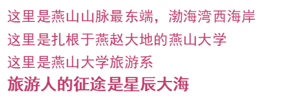 山海扬帆,燕大旅游人的星辰大海从这里启航,这场不负勇往的征途有你的加入将会更加精彩!