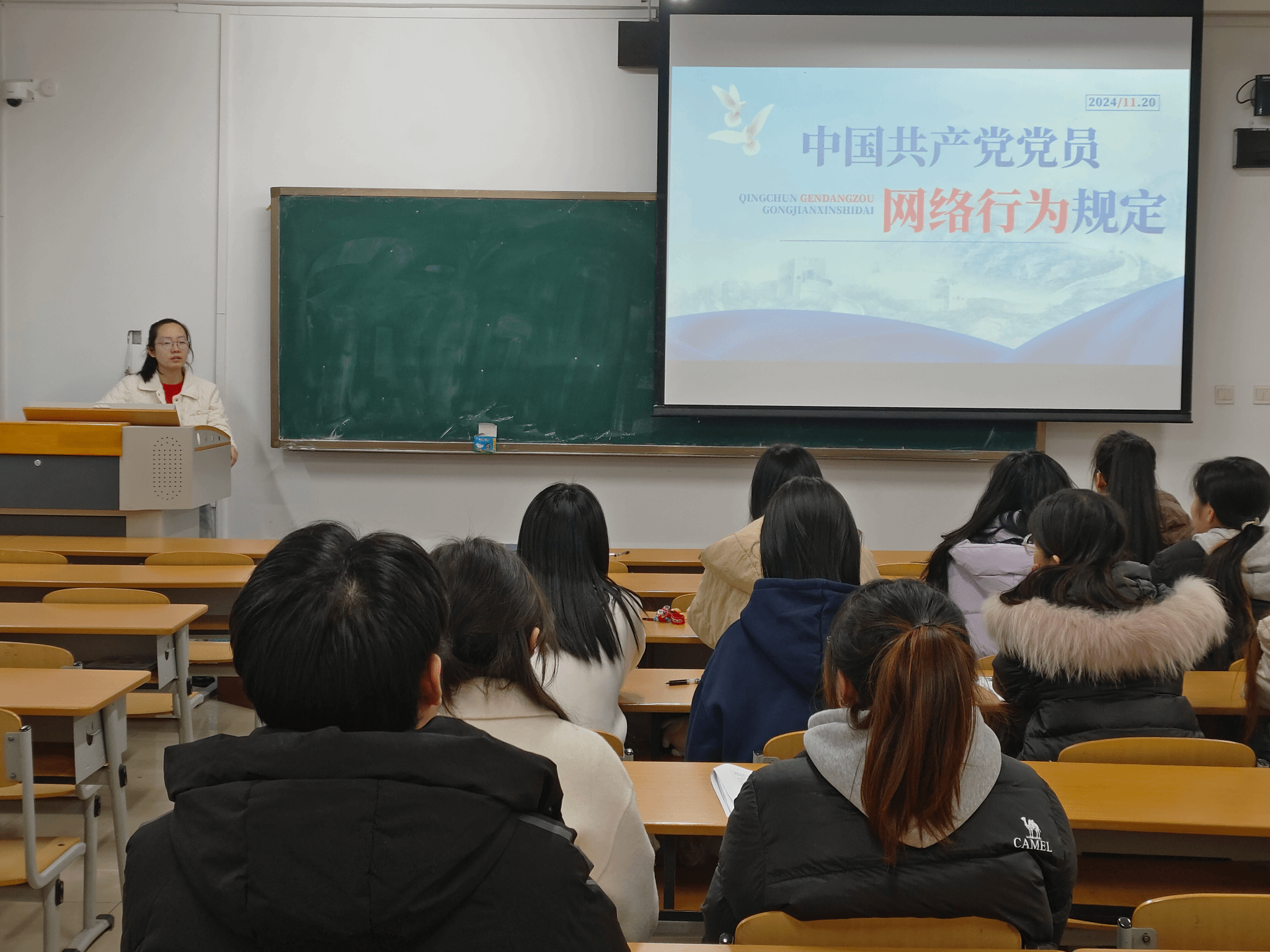 本科生第三党支部于11月7日成功举办了学习《中国共产党党员网络行为规定》的专题活动。本次活动由学生党支部书记李佳凝主持,、学生党支部全体党员及入党积极分子参加了此次学习。