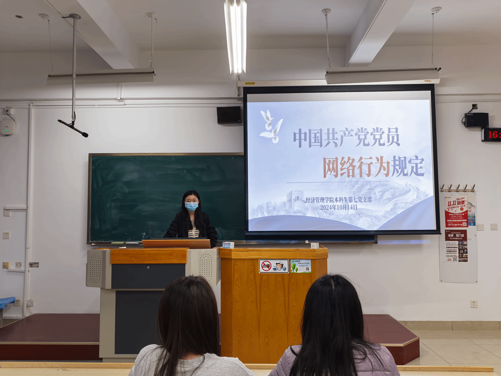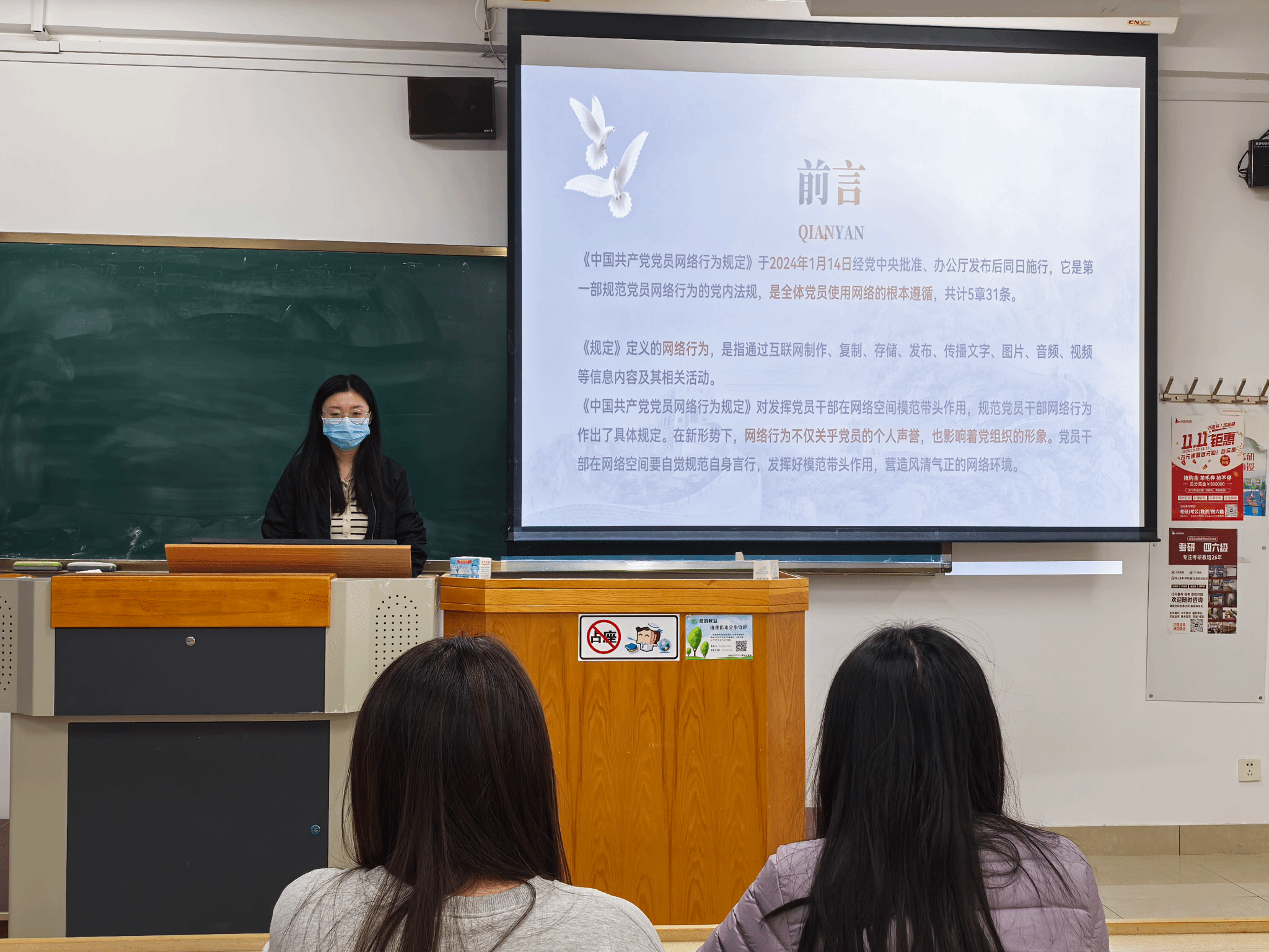 本科生第七党支部开展学习《中国共产党党员网络行为规定》主题党日活动。本次党日活动由支部书记唱思迪主持,全体党员参加。