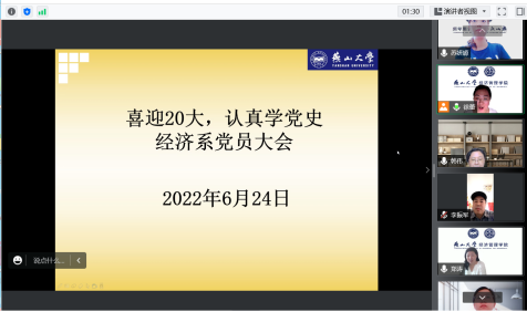 2022年6月24日,经济系党支部党员在线举行了2022年第2次党员大会。会上,支部书记徐蕾传达了近期学院党委的一系列重要指示,党员们共同学习了党史,大家还对支部“奋进新时代、献礼二十大”学习教育实践活动进行了讨论,制定了初步的活动计划。党员们怀着激动的心情,纷纷表示要认真贯彻执行上级的指示,学好党史,积极参加党组织的活动,用实际行动来迎接二十大的召开。