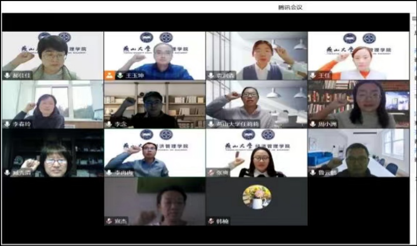 最后,王佳老师带领会计系党支部全体老师集体表态:将按照二十大报告的要求,进一步细化工作目标和举措,落实利德树人根本任务,持续推进会计教育高质量发展。