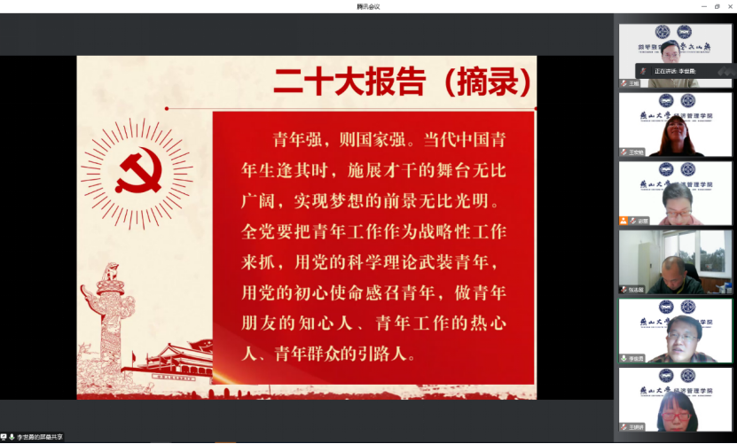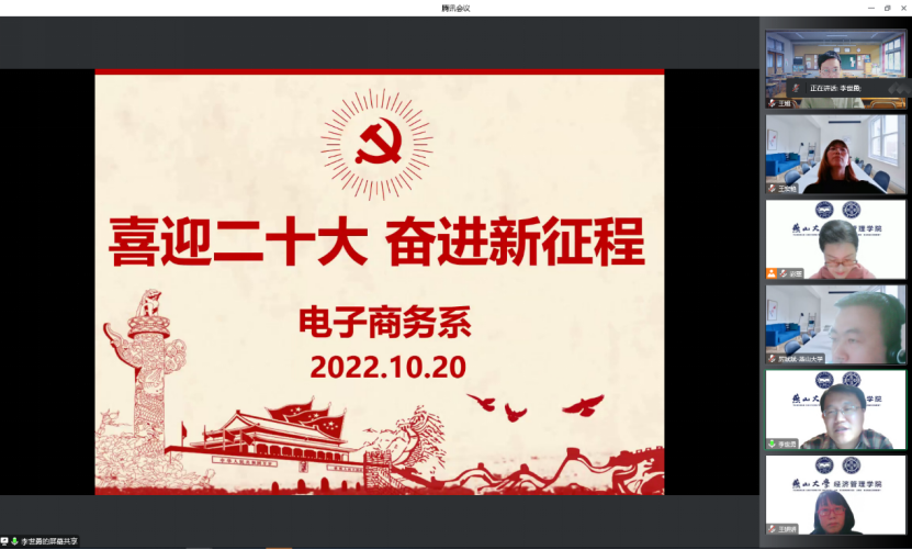 10月20日下午,电子商务系党支部以线上会议方式深入学习了党的二十大报告,支部书记李世勇主持了学习活动,电子商务系全体教师参加了学习活动,哔咔漫画