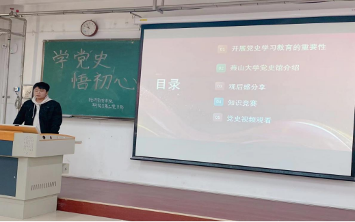 硕士研究生第三党支部在经管楼B101举行“学党史 悟初心”主题党日活动。活动由支委委员冯华跃同志主持,支部书记田老师及支部全体党员参加了此次会议。