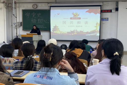 接下来是各班党员代表进行党史学习教育的分享交流。我们要从党史学习教育中汲取经验和智慧,用党的奋斗历程和伟大成就鼓舞斗志、明确方向;用党的光荣传统和优良作风坚定信念、凝聚力量;用党的实践创造和历史经验启迪智慧、砥砺品格。