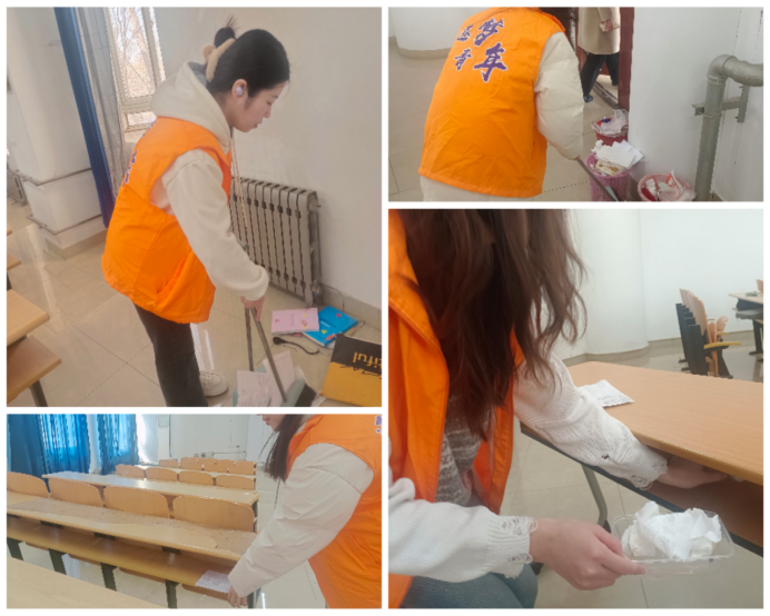 本科生第一党支部开展了打扫教室卫生及美化宿舍环境的活动,这也是本科生第一党支部一直以来坚持的实践活动。此次实践活动,主要是以为同学们营造一个良好的生活、学习环境,发挥毕业生党员的先锋模范作用,更好的在思想上、实践中践行雷锋精神,以廉洁奉公的精神面貌在校园、社会树立新风。