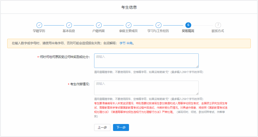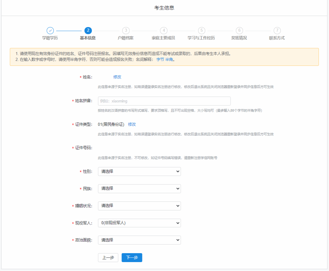 三、填写考生信息